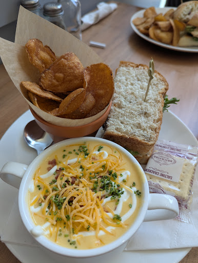Read moreStopped in to Olive and Rye for the first time. We're so glad we did! I had the half sandwich and soup combo with house made chips. The chicken salad sandwich on thick, fluffy home baked bread was full of nicely seasoned chicken, dotted with grapes, and topped with crisp, fresh lettuce. The Loaded Potato Soup was hot and tasty. The house made chips were crunchy and salted just enough. The entire plate was an inviting presentation. My husband chose the Chicken and Avocado Ciabatta Sandwich, which he definitely enjoyed. We...