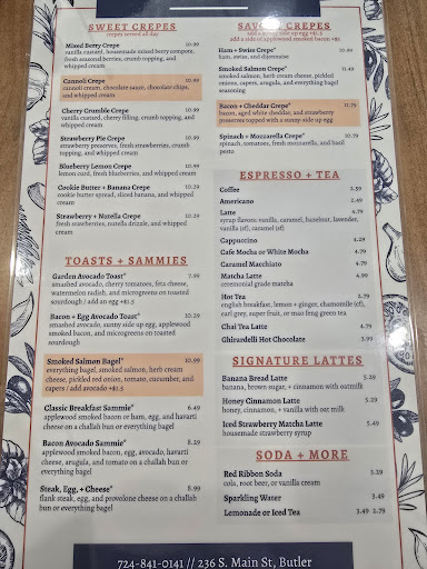 The sweet crepes, savory crepes, bagel sandwich, and drinks were all delicious and nicely plated.