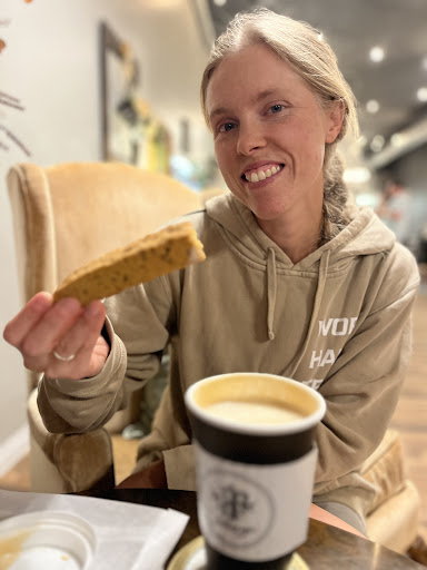 Today I had the Baklava Latte with almond milk and a biscotti.