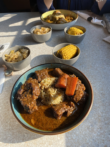 Read moreWe were the only people there we were not greeted by staff. We walked to counter and we were to to sit anywhere. We sat ourselves and waited 10 to 15 minutes for someone to take our order. Food came out after 20 minutes the presentation of the food was nice and food taste good but cold not ice cold but not hot. Oxtail wasn't seasoned. Seafood gumbo had one salad shrimp and a whole small crab again the water in the bowl for gumbo was Luke warm. Jerk chicken was not bad but cold. Nobody wanted to send food back because the atmosphere wasn't that welcoming for us. But another couple came in they were (white) the staff greeted them got them water we ( black) had to ask for water, salt and pepper, and wine menu which was on a board on the wall covered by bowls The ( white) people food came out smoking hot and they right away had drinks. I was super confused as to why the service was so different for us. And the only 2 staff (black) kept looking at us like they knew that they were wrong. Never will I eat here again. Very...