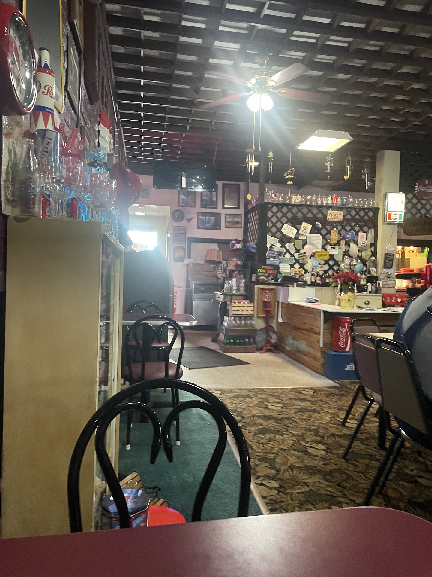Side note:* I found out the hard way that with the two toilets in the ladies bathroom one is just for show... I walked in, the lady before me must have forgot to lock the door, anyhoo as I’m getting ready to go to the toilet that I see, I peek into the random stall that’s in there and bam there is this sweet lady in there silent, probably mortified that she forgot to lock the door, at this point I should have backed out and gave her her space... well I didn’t think of that in the moment so I chatted with her while I peed in the side toilet... there was no toilet paper (I noticed late) so it must have been the one for show... anyhow the sweet lady seemed to take it in stride... this probably speaks more about the people of Butte than the restaurant but they...
