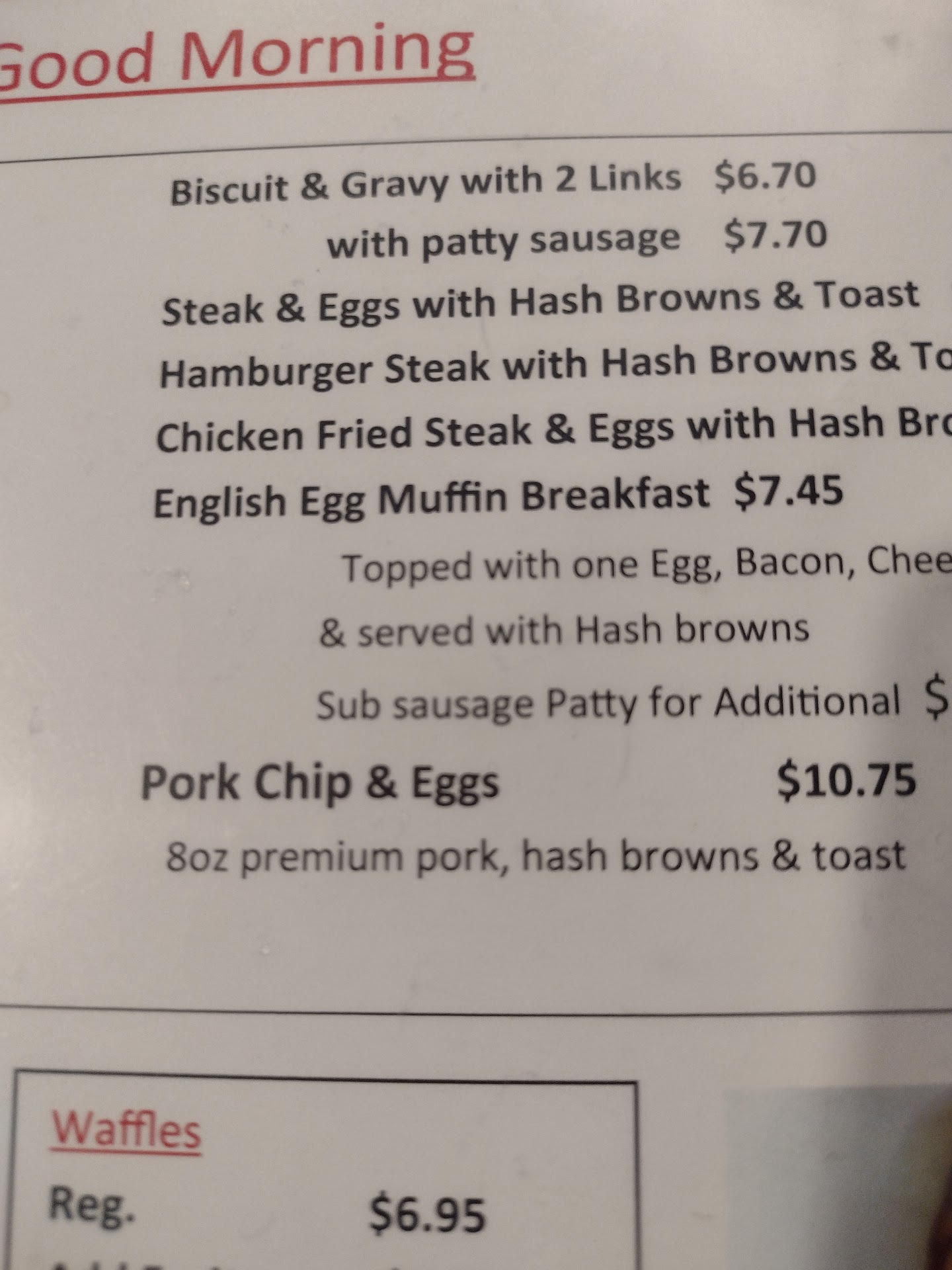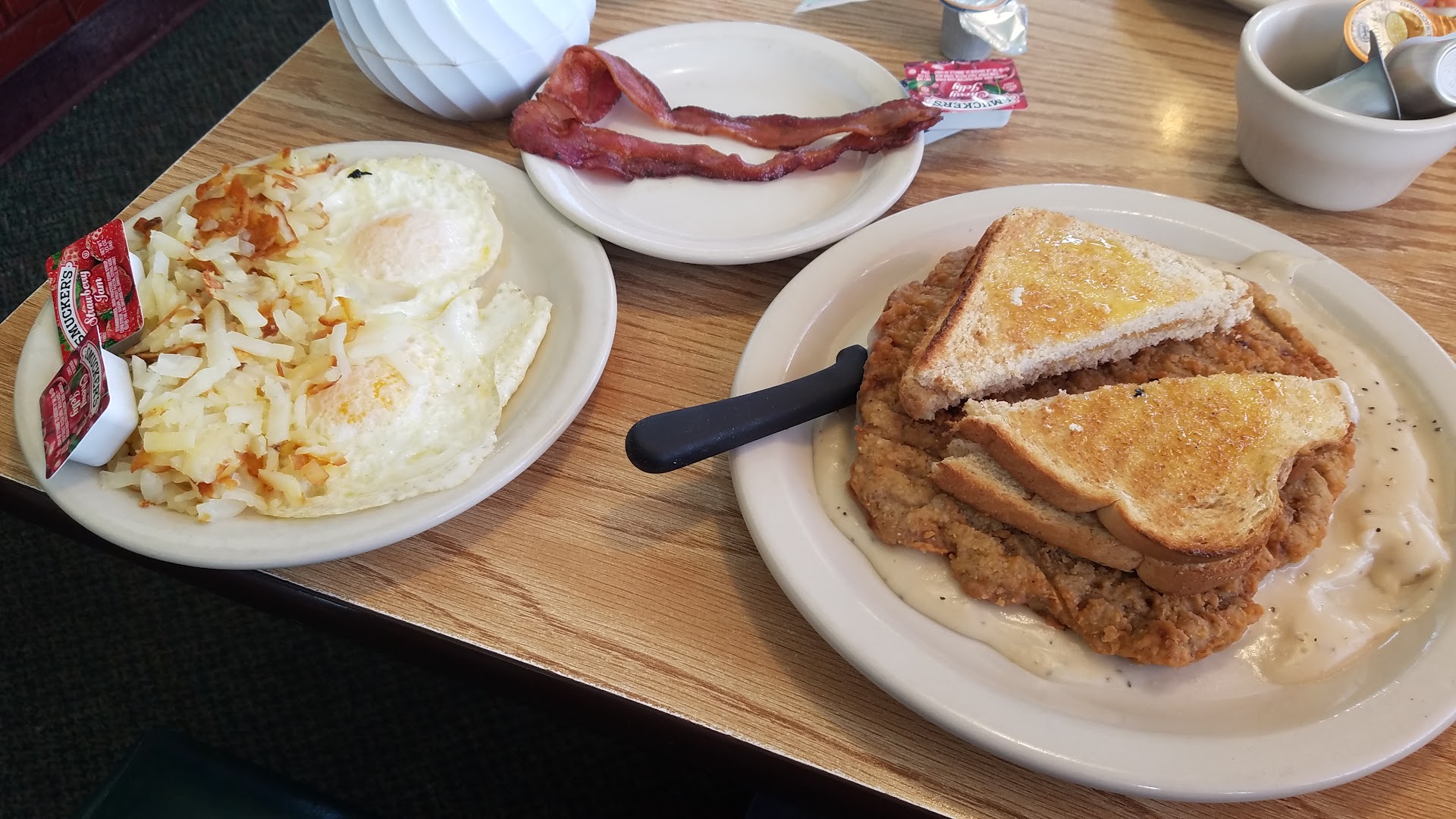 Read moreAlright. This is a place that serves “food”. That is all. When I say “Food” I mean substance that shouldn’t be edible but they give it to you anyway. I got a chicken fried steak, mashed taters. Taters were good. I couldn’t get through half a chicken fried steak before realizing two truths. Number one, this food is mediocre. At best. Bland, nothing special, no exploding flavors. Just feels like poor effort in your mouth. Not worth 9 dollars. Number two, my entire body felt terrible, with nausea insinuating in my stomach. I’ve worked in the food biz before, and this tasted like food that was just sitting there for too long. I want to like this place: but there isn’t a single ounce of effort front to back. Weird clientele, but hey, it’s butte.