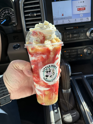 The food here is PHENOMENAL! It is no exaggeration whatsoever to say that this is the BEST burger joint I have ever had the pleasure of finding. First off, the customer service here is above and beyond. The staff here are pleasant to conversate with, have great manners and are eagerly attentive to their customers. Genuine Southern hospitality can be found here. The portions are beyond generous. The burger patties are THICK THICK and grilled to perfection. There is a heavenly smokieness to the beef that is reminiscent of slow smoked BBQ ribs and it is something magical. The fries have a wonderful seasoning blend that is crave-worthy. Proper onion rings ara a must for me, and theirs DID NOT disappoint. The rotel add on is a MUST here!! We added some to our burger and dipped our fries and onion rings in the rest, and I am telling you right now, you could pour that stuff on cardboard and you'd have yourself a fine meal. The homemade ranch dressing they make (though thinner than the bottled ranch) had a savory flavor profile that makes it truly special. As far as dessert, they knocked it completely out of the park too. Their brownie bowl will fill the void the old Sonic hot fudge cake Sunday use to fill, it's fantastic and chock full of dreamy fudge. And the eggnog shake is superb. All in all, this place is a local treasure trove. If you are even thinking about getting burgers, ice cream or onion rings soon, look no further, THIS IS YOUR PLACE. Nothing here was less than PERFECT (and we took ours to go, didn't get to eat it until it had gone cold, AND stood in line in the rain to order and STILL had ZERO complaints and would do it again anytime). There aren't enough stars to rate them properly. They get 100/100 from my family of true blue food snobs. If Little Moo's doesn't impress you, you simply aren't capable of...