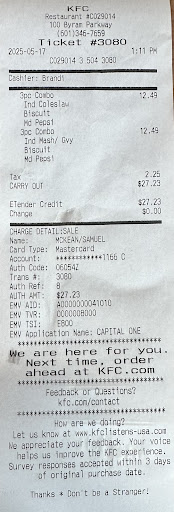 This is where I swallow my pride and admit to one of my “Karen” moments. I went to the drive-through and ordered a meal that had one side and I added a side. As I drove away, I’m looking for the box and I don’t see both sides. Of course I’m driving down the street and I’m hangry by this point so I flip back around to go back and get my durn Cole slaw. Marched into the restaurant in a way where everybody knew I was irritated. I mean, not combative, but irritated and immediately walked up, and I made my complaint. I had two complaints by the time I got back. I didn’t have my coleslaw and that my biggest piece of chicken looked pitiful and was missing a lot of crust. Who I assume was the manager calmly came from the back, pointed out to me that my coleslaw was indeed in the box And then gave me another piece of chicken to replace the pitiful looking one. I was so ashamed I apologized profusely and tried to refuse the extra piece of chicken since I had been so wrong. I wouldn’t have come back to complain about the piece of chicken alone. She insisted I take it anyway and did not pile any guilt one me. She was a complete professional about my coming in and acting like a jerk. The food wasn’t great, but the service was very...