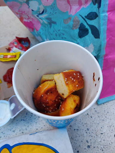 Read moreAfter being rushed through my order, the next person was being rung up as I put away my credit card and tried to pick up my items. There weren't a ton of people in line either. Maybe 4 other people. They had the line set up in a way that forced you to walk back through the line of people to get to the spot where straws and napkins were. Instead of the line coming from the right and going left it was the opposite. My friend and I each ordered the pretzel bites and shared the cinnamon sugar ones. The plain pretzel bites were...