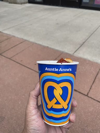 Read moreLove coming in here for a quick bite to eat while strolling the shops at the mall. I think mall pretzels typically get a bad wrap for being stale, gross, cold, and the workers uncaring. "And what's the deal with peanuts on airplanes?" 😂 But pretzels at Auntie Anne's are different from your normal mall pretzel flair. So far my favorites are the Cheesy Jalapeno, Pizza Bites, and the Cinnamon Sugar - which taste almost like an elepant ear. They also serve drinks, slushies, Pretzel Dogs, and Pigs-in-a-Blanket. These fabulous menu items always seem to hit the spot, so we can get back doing what we love - shopping...