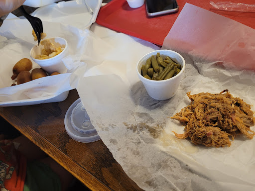 Very disappointing. My family and I stopped at this exit for food on the way to Florida. The options were fast food or this bbq place. We chose bbq. We thought it was odd that they weren't swamped inside at dinner time but then we saw they had a busy outside drive thru. Ordering was simple, although prices seemed high. My husband's pulled pork plate/combo didn't come with a bun? Perhaps he missed the details? I only ordered a pulled pork sandwich and one side of green beans. I gave my husband the bun from my sandwich and noticed my meat portion was quite meager. I thought the pulled pork tasted pretty good with their bbq sauce. My husband wasn't impressed with the pulled pork, he wouldn't recommend it. The side of green beans for $1.99, is tiny! It's a good portion for a small toddler. See the pics. I took a pic of my meal and my little ones meal. Almost enough for my 4 year old. The kids meal was $4-$5. She got 5 mini corn dogs and a tiny side of mac and cheese. Nothing else included in that. The mac and cheese was dry and not much flavor. đ Both my husband and 4 year old didn't care for it. If you're eating here definitely go for the green beans. They tasted great. My teenager got the chicken tender kids meal. I asked her how it was and she said, "Ehh, okay." In summary, for the price we paid, we definitely feel like the food was sub-par. We probably won't return. Maybe other items on the menu are better? I guess just don't go in with high...