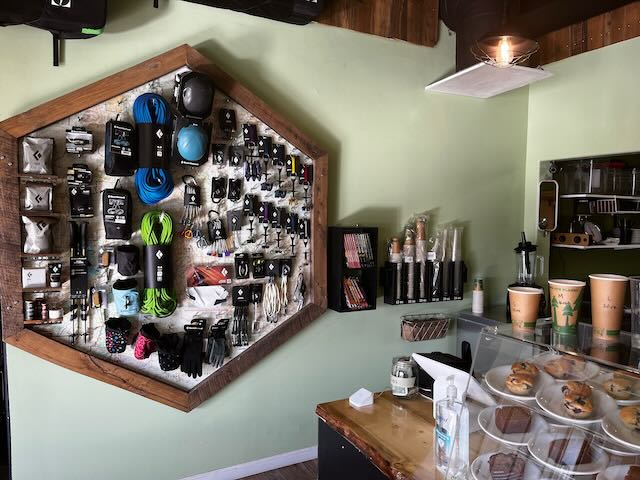 There are several fine coffee shops in Canon City. Cafe Belay is different for two reasons. First, sustainability, in terms of business practices and ethics, is the foundation for what Spencer is doing. These are deeply held values for him, and Cafe Belay is an expression of these values. Second, Cafe Belay sells rock climbing gear, which I haven't seen in other coffee shops. Given that our region has outstanding rock climbing opportunities, this is a natural pairing.