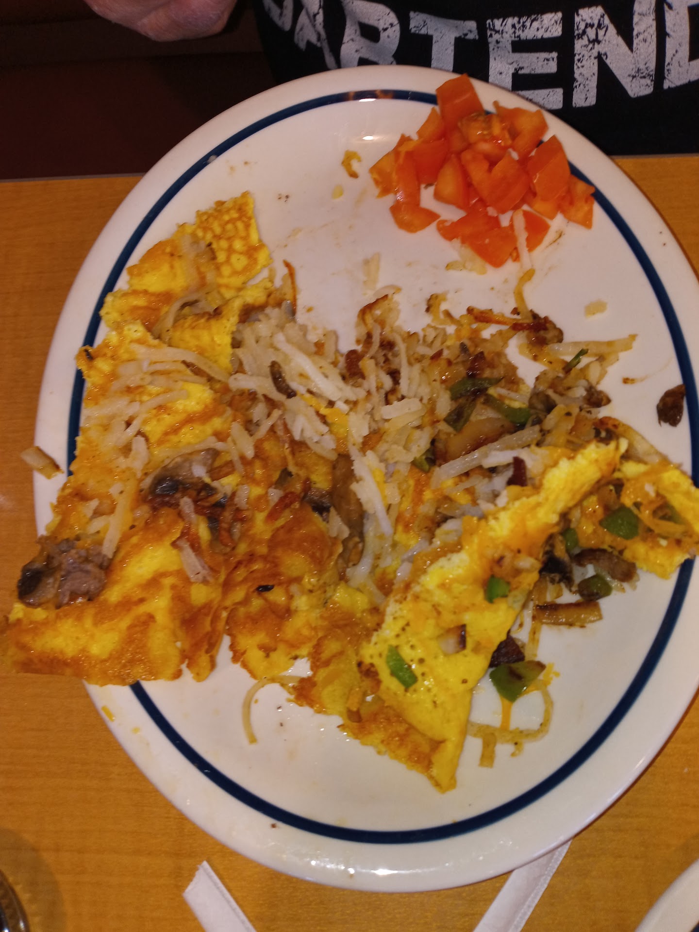 Read moreUnimpressed, Disappointed, and Grossed Out. I do not typically write reviews but I hope that the feedback about my experience will be reviewed and taken seriously with action. First an foremost the cleanliness of the establishment and general process of food safety standards needs addressed. The start of concern one silverware roll up had a very dirty spoon, this wasn't of too much concern this happens. To follow, I ordered a steak omelette that had all the fixings, within just the first few bites I found a small black hair that resembled facial hair. At that moment I lost my appetite and informed the server. She quickly offered a replacement which I understanabley denied. Right after she brought the check offering 10% discount off of our entire ticket but not removing the hairy omelette, this was insulting and lacking a bit of common sense. Thankfully she removed the omelette completely after we shared our unsatisfaction with this "solution". After this I had asked for more creamer and to my validation of not wanting more food, we found a second black hair in the bowl that the creamer was provided in.... Please reevaluate your food safety handling with all staff, especially the cooks and servers as clearly there is contamination happening.