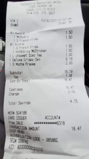 Read moreVisited on dec. 21, after coming out of ER visit and surgery, and just wanted a sausage sandwich and a coke. The elderly woman running the drive thru must have had a much worse night and morning than me. Proceeds to collect my order, along me to read the menu off the screen stating that I could not get the 2 for 4, since I wanted a coke, and a latte... Could not just upsell the drinks, told me I had to get meals.. that's fine I said (in pain from having my mid section cut open 6 hrs ago), pulled forward, and she's telling at people at the 2nd window, "I'M GOING TO KILL, SHOOT THIS COMPUTER", and takes my $14.11 for 2mcgriddle meals, and says, "I've been here 18 months, and with the golden arches since 1962, how old were you then?" Sorry Ronald did not have a pension plan.. Maybe somebody called in sick that day, and she had full wear the Santa hat that day.. Maybe Gov't shut down was delaying her social security.. Maybe I should have told her I've got a hole in my gut that I could put a 2x6 thru and she's at least standing.. No maybes, I will just not ask for a special order and make her want to strangle the computer. Still live McDonalds, and burger King gone in woodland, but I'll just schedule my ER visits to coincide...