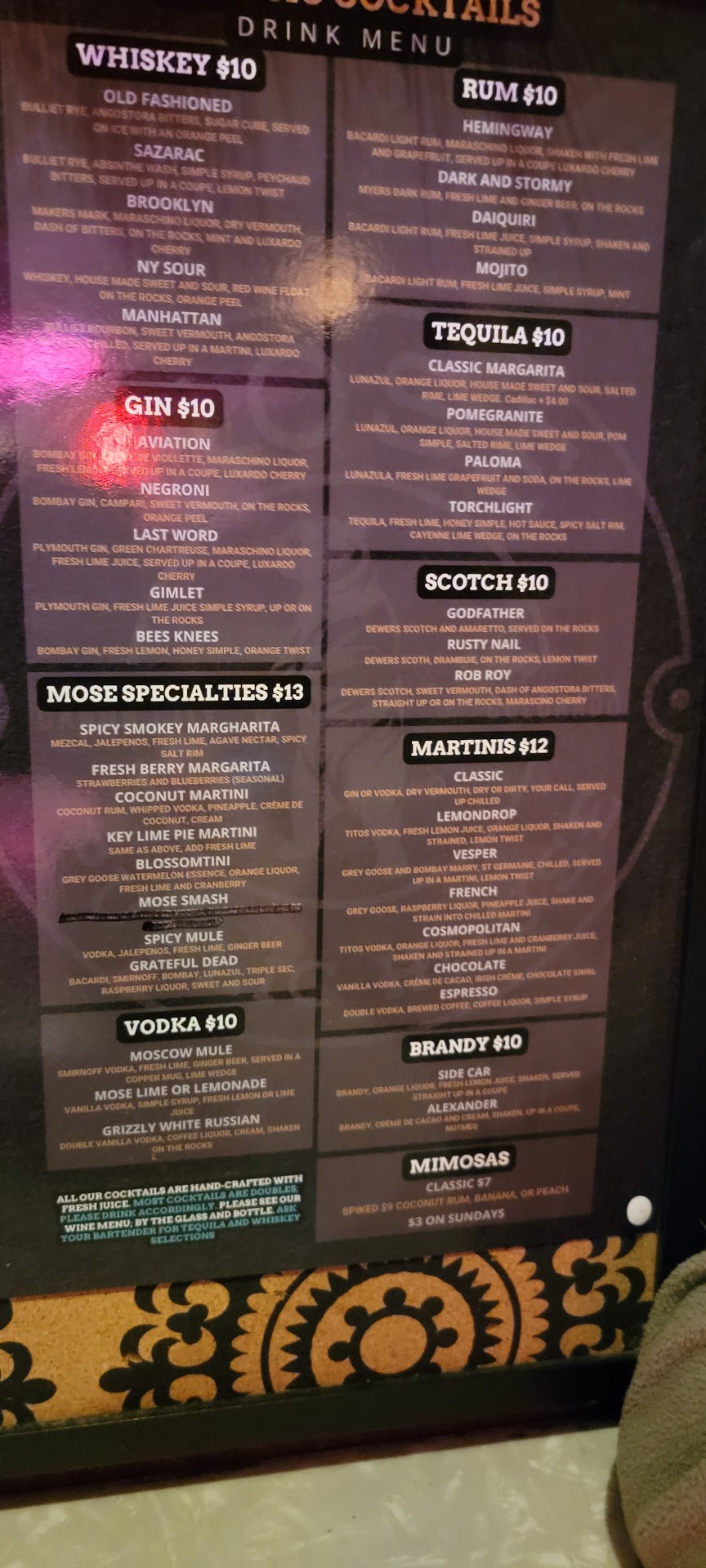 Read moreMose Public House is and "Upscale Dive Bar". It features many Colorado distillates. The featured mixed drinks are so fun! "Bee's Knees" is the drink I want to try next visit! This delightful addition is located in the heart of Canon City's Downtown Historical District. The decor is full of historical photos, the bar itself being a restored relic. The pool tables are clean, balanced & beautifully kept. It is named for a bear that terrorized the area at the turn of the century. Friendly, no-nonsense, skilled bartenders deliver AMAZING drinks! Full pours wine & beer, generous spirits in their mixed drinks, too! This place has it all. I highly...