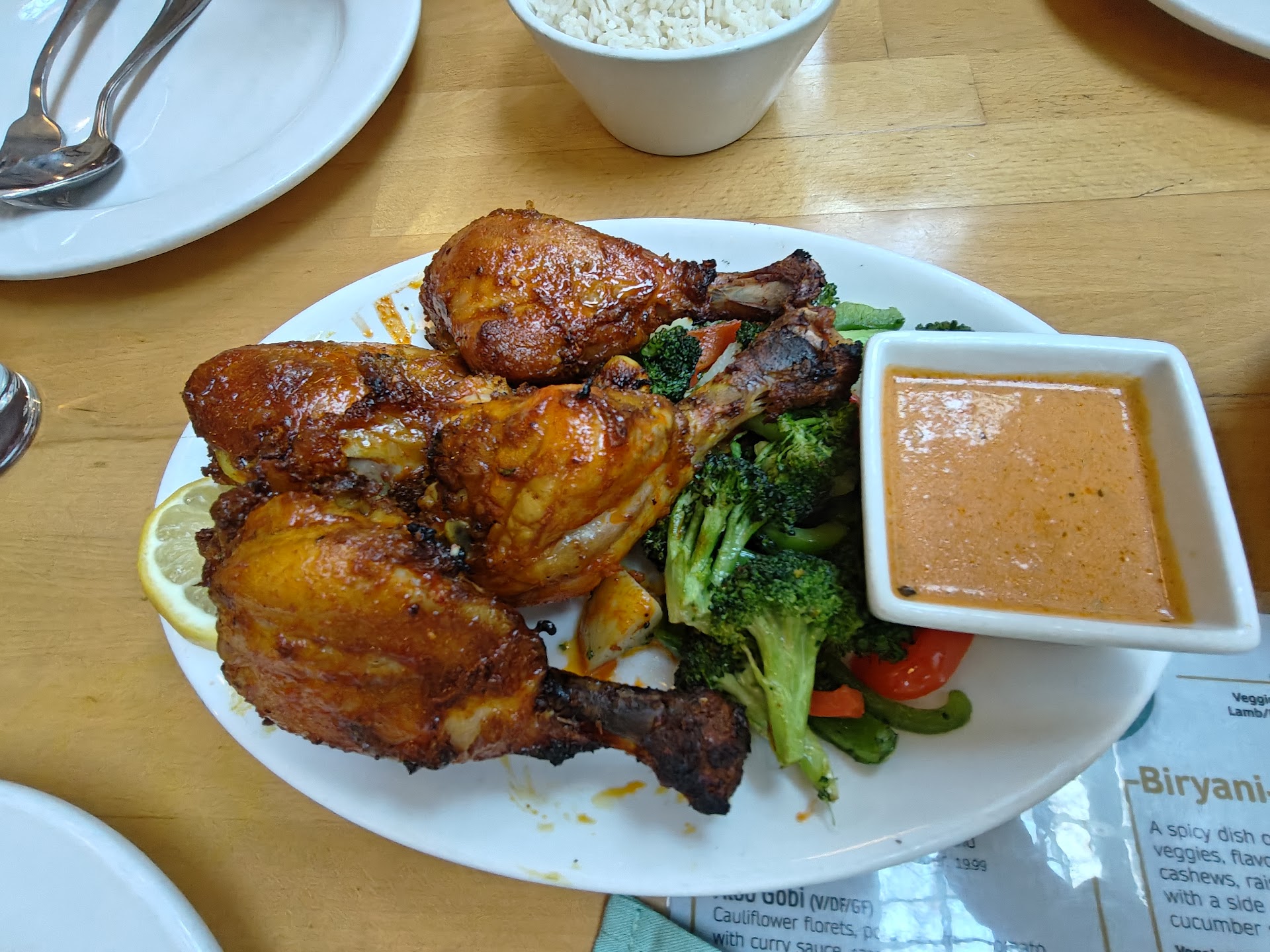My 8 year old daughter's review: I highly recommend the butter chicken. Food came very fast. There were a lot of paintings. Server was polite and filled our...
