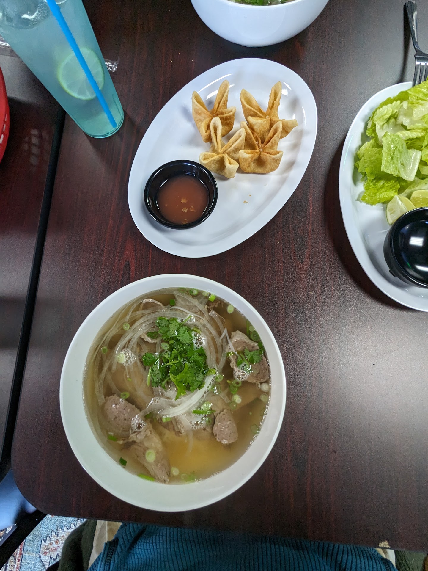 We came on the first days of opening and at that time the restaurant was very clean, even though it was busy, the wait staff still welcomed you warmly, and the food and drinks were delicious. We were very happy to have a pho restaurant in town but when they closed for a short time, this time back everything seemed to have changed, a few tables sat and waited for quite a while and the hostess sat and played on his phone, when the call came out. Only after taking the order did he put down his phone and the dining table was dirty, the sauce bottles were rough and dirty, the pho soup was rundown, and the appetizers were no different. The soup broth has just completely lost its original flavor from the opening days and it's so sad and disappointing! We hope it improves so we can keep...