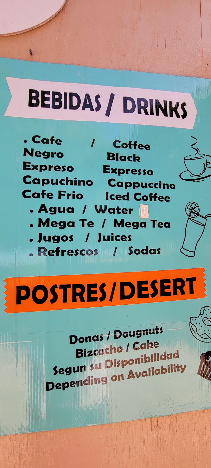 Drinks: Enjoy a wide variety of coffee options, including black coffee, espresso, cappuccinos, and iced coffee, alongside refreshing juices, mega teas, and sodas.