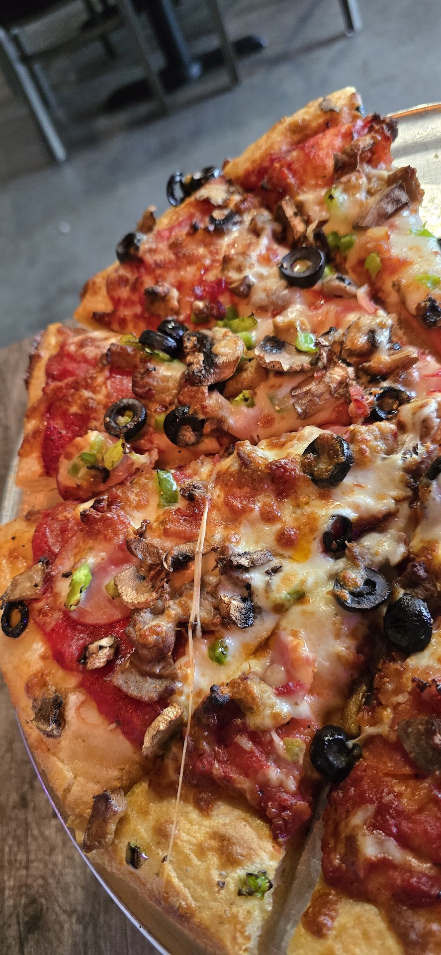 We ordered fried raviolis, 3 tamale basket, garlic bread sticks, a medium thin cheese pizza and medium thin Kujo. The raviolis were hard. They seemed overcooked. The tamale basket was room temperature at best. The breadsticks had very little flavor. The marinara/pizza sauce served with appetizers tasted tinny. Lack of better words. I guess some people like that flavor. We weren't a fan of it. I expected the crust to be crispy. It definitely wasn’t that. That’s what I remember from eating at the LPC in MS. I could be mistaken though. Toppings were spread evenly across both pizzas. I think the ham/canadian bacon had an off flavor. Again it’s personal preference. The rest of the toppings were fine.
