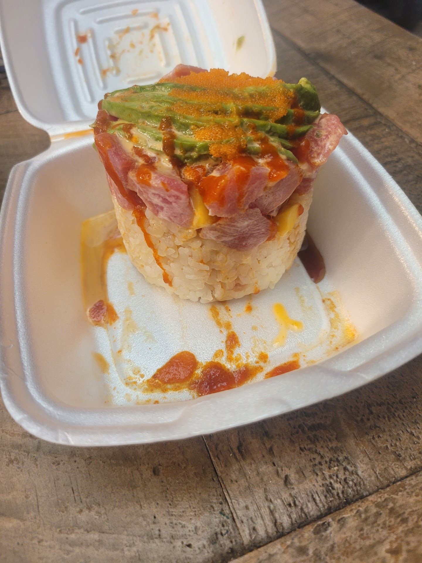 Our daughter is a sushi connoisseur & ordered the nigiri & a Tokyo Drift roll off the A-list (can't remember the name) that included cream cheese & tempura-battered crawfish set in & drizzled with 2 sauces. Her order arrived more than 10 minutes after ours. After eating the 1st 2 pieces of nigiri, she ate the fish without the rice because the fish was cut a bit thick, & she didn't finish it because one of them tasted funny. The Tokyo Drift wasn't great, either. We each had a piece, & I can't put my finger on it, but one of the items tasted a bit funny, & it wasn't the rice or the sauce but something at the bottom of the roll.
