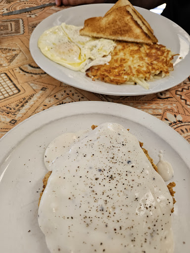 Read moreNew to area and gave this place a try. Parking is ample and there is more seating than appears from the outside. It's your welcome small town diner feel, loved all the funny signs on the wall and the welcome in, sit were you please. It was a very hectic Saturday morning breakfast, obviously filled with some loyal regulars. We got a table immediately and even though it was nearly a full house service was quick and efficient and coffee refills kept on coming. Hubs had the CFS breakfast and I had the hobo omlet. The portions are large and very fairly priced. Will say the CFS was middle of the road, have had better but definitely have had worse and with the portion size and sides completely worth it. The omlet was delicious packed full of breakfast meats and veggies- it was huge, definitely enough to share. Btwn the two meals the hashbrowns, toast and biscuits n gravy on the side were tasty. All real hearty, half the omler carried home as leftovers and kept us satisfied until dinner even working outside the rest of the day. Definitely look forward to returning to try more...