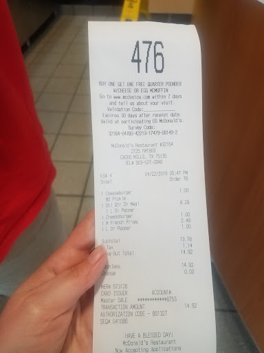 After leaving the restaurant and getting back on the road. I had to basically stop as fast and as safely as I could about an hour give or take... as I apparently got food poisoning from the big mac, fries, or iced tea. Wound up having it come out of both ends of my body on the side of I-30... 3 or 4 times while trying to get to my stop over point at the border.