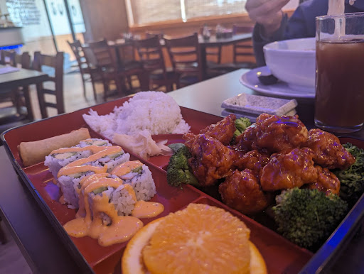Elaine I believe her name was, was lovely! She was super kind, smiling, and took our order with so much politeness. As we told her what we wanted, we asked for her recommendation with the hibachi meals. We got steak and seafood combo with the noodles (her rec between rice and noodles). She was on the nail with the noodles , it was delicious. We also order sashimi dinner, dancing angel roll and fireball roll I believe. All was very satisfying.
