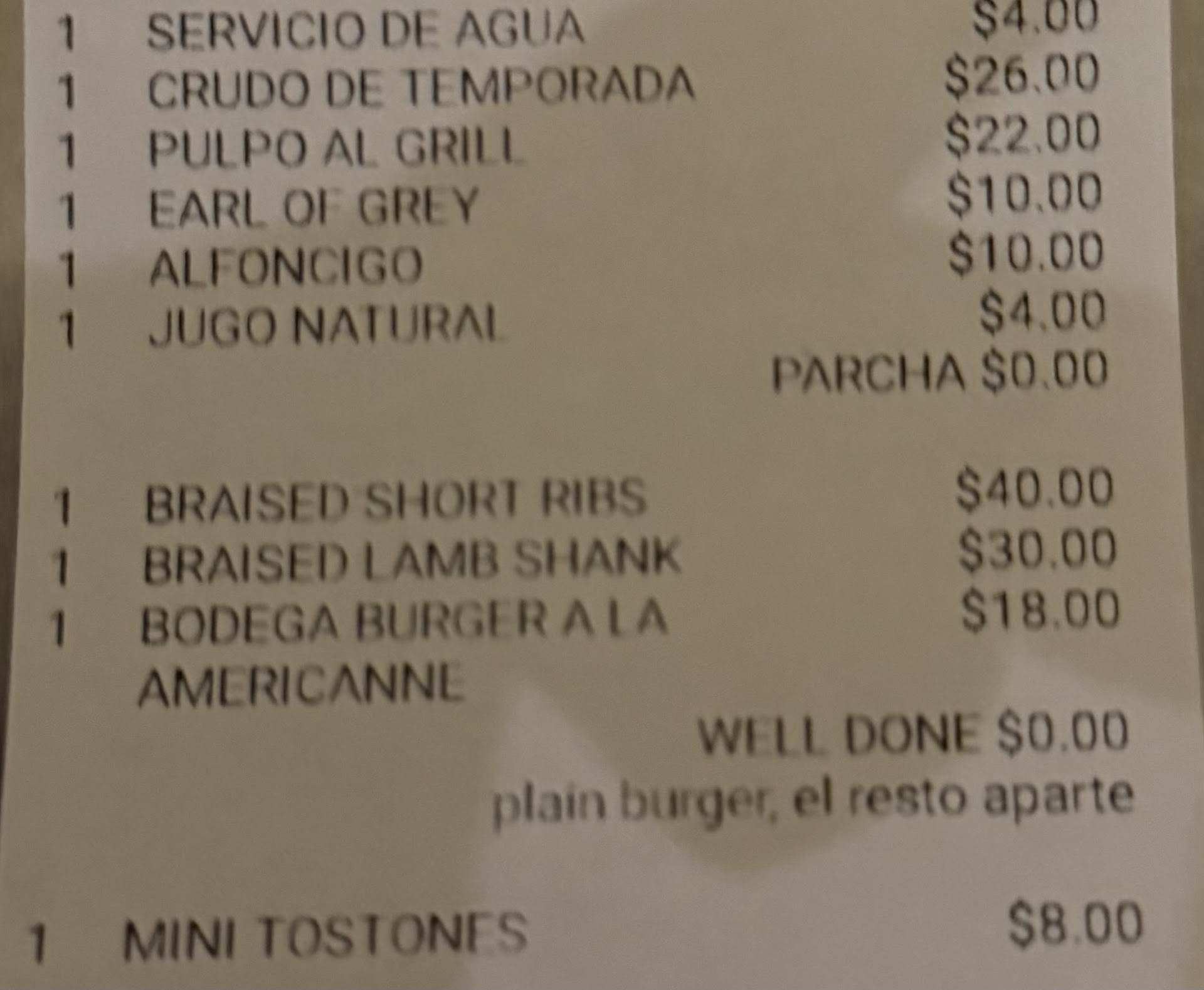 For main course Ordered the braised lamb ($30)and short ribs ($40). Half of the lamb was fridge cold which made us think this was re-heated food and the short ribs was nothing special for $40 which included some sort of mash with with no flavor.