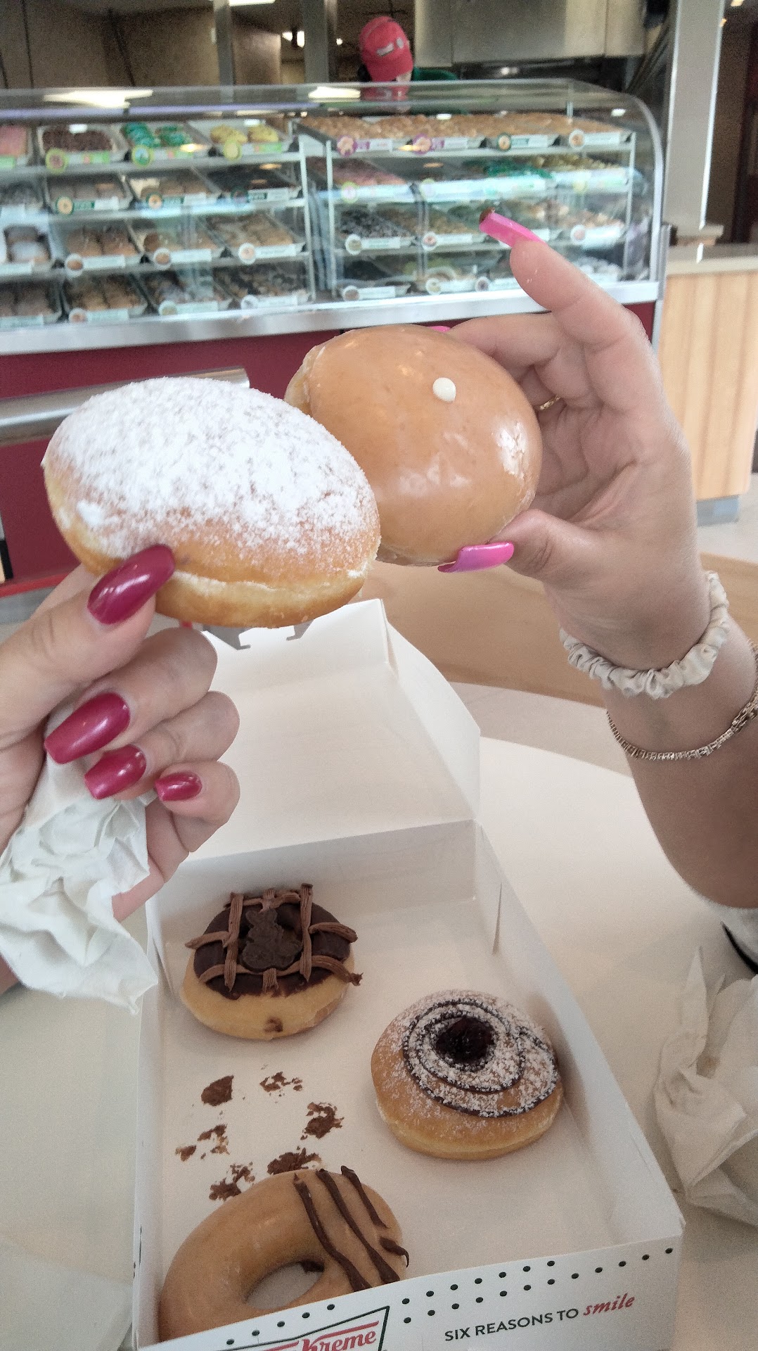 La variedad de sabores y estilos de donas que ofrecen es asombrosa. Desde las clásicas glazed hasta las creaciones más innovadoras, como las rellenas de crema o las cubiertas de chocolate, hay algo para satisfacer todos los antojos. Además, siempre están frescas y tiernas, lo que las hace aún más deliciosas.