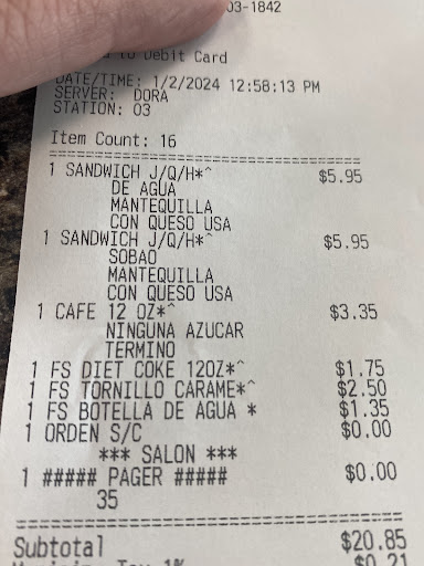Read more1rst & Last time me and my wife go there. I really don't know where to start! We think it's probably because it is sunday because; Tables were all dirty with food leftovers, both trash cans on the middle isle were full to the top, people just using wifi without consuming from the store (Kinda like Starbks), The lady that attended us was also unhappy (Not customer friendly), dirty restrooms including the ladies wich my wife told me there wasn't even paper to dry her hands ohhh and last but not least the edge of our table got her new shirt all stained. My Pastrami sandwich was loaded with Mayo...ONLY GOOD THING 4 ME AND HER WAS THE SWEET BREAD FROM OUR SANDWICHES. So...