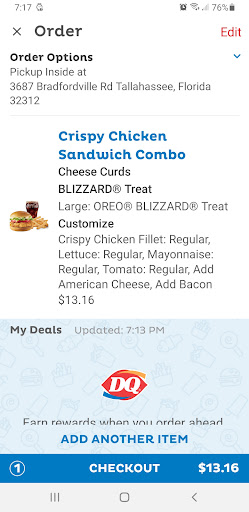 So I work next to a DQ and every 2 weeks I treat myself and I get the same thing every time. When the young lady said my total, I thought it was high. When I got up to the window and I asked her why it was so much, she got a huge attitude and read back my order and asked if I wanted a receipt. Of course, I said yes. Right after she gave me my change and receipt, she hurried with my food. As I drove away I glanced down and saw I was individually charge rather than an meal like I requested with substitute items like cheese curds and a blizzard. I went back to the drive thru and asked what is the charge for substituting a blizzard and she said they are rang up separately. I said thanks and drive off. Now this over charge of $3.00 is per person and it got me thinking about all the other times I've been over charged when I've taken my family of 6 there over the past 16 years. I went on the DQ app and placed the exact same order and it was $3.00 less. Sadly, we won't be eating here anymore and now when I hear people in our small town talk about how DQ has been I've over charging, I can pull up my pictures to confirm it. I'm posting my pictures of my receipt along with how I order on the DQ app. Clearly it shows that a blizzard CAN be substituted for a drink for a...