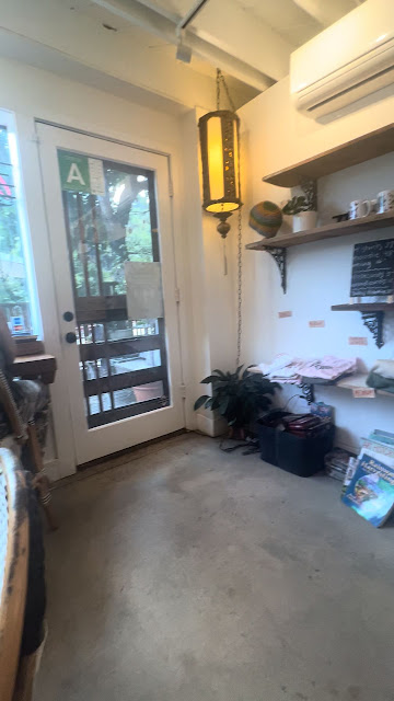 Upon arriving, it was obvious that Cafe Mimosa boasts a community-friendly atmosphere. Folks from all walks of life were enjoying the services and listening to live local music. The coffee shop has a little boutique, and an a small area filled with business cards and advertisements from locals. Everyone was chatting as if they'd known each other for years. (Which is entirely possible in this area.)