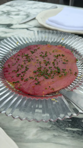 Pricing is another concern. The menu is significantly overpriced considering the quality and execution of the dishes. To add to this, a surcharge was applied to our bill for a party of two, which is both unusual and questionable. The receipt also indicated “happy hour” at 8 p.m.—a detail that was neither advertised nor explained. Such practices raise concerns about transparency and management priorities.