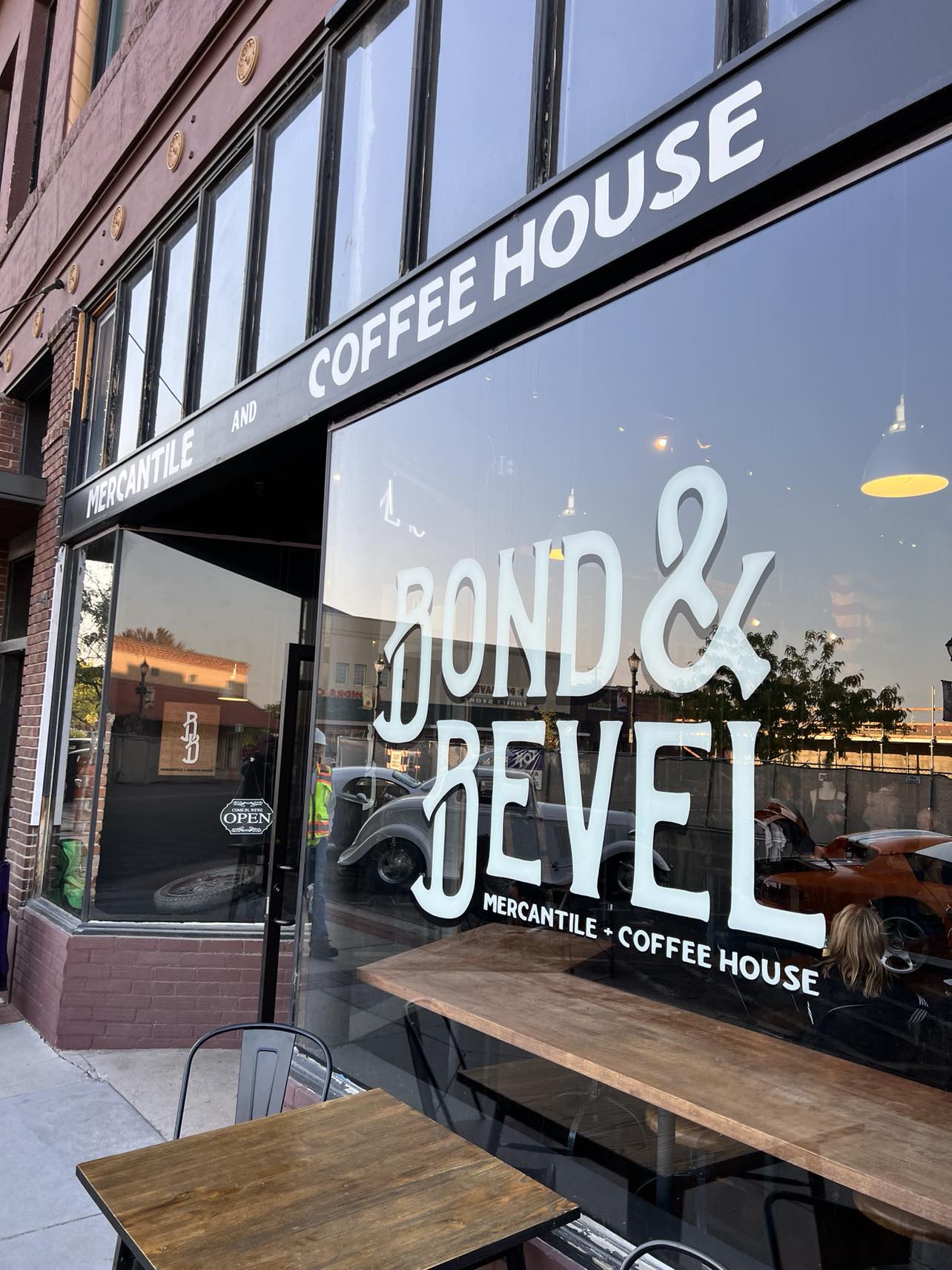 Here's some advance notice: The Downtown Caldwell Winter Wonderland ice skating and a million lights starts up 1 million nightlights daily from dusk to dawn November 22 through January 13. This is an ideal time to drop by Bond & Bevel for an evening warmer up coffee, hot chocolate or specialty drink and pastries. However I enjoy the quality of their latte's and scones year round. The coffee and tea menus and pricing are really quite reasonable and your money is helping a local business instead of a National chain. Last time, I ordered a foamy latte and a Rose Hill Bakery dark chocolate scone to go. I often come back for a Flat Coffee. Perfect match for a chilly day. Check out their poster on the wall to help identify what to order with a nice set of visual graphics. Bond & Bevel is about the unlikely combination of a hand-crafted leather goods, earth toned apparel, outdoor gear “mercantile” and a very comfortable space to visit that also has quality coffee, espresso drinks, tea with scones, muffins and bagels. It is housed in a brick building, once Commercial Bank, also known as the Caldwell Bank and Trust Building. Briefly, the Espresso beans are Margin Coffee, a coffee roaster in Albany Oregon where the owners moved from. Bond & Bevel is a family business as Heath and Krista Albers sought out a place where they could work together. I think the coffee is still sourced from Alchemist, the milk comes from Reed’s Dairy, the syrups from Center syrups of Central Oregon. The scones are sourced from a three-minute walk nearby, Rose Hill Bakery. The bagels are from Sarah’s Bagels, and other bread and pastry items from Gaston’s Bakery. A favorite tea brewed and flavored Chai is called a London Fog. By design, their strategy was to pair up a typically less frequented business (with high-end clothing, leather bags, wallets, aprons, ornate knives and axes) with something that could bring in potential customers daily. From the thick heavy China cups that hold in the heat to black double walled cups you can buy to keep beverages hot; to the black to go cups, the 5# bags of coffee, to adding extra filters on the water coming into the building and on the machine before it becomes a brew… it is well thought out and executed. Plus, a beautiful third space to hang out at. The walls are black, a 1940 M-72 motorcycle greets you as you enter, and the woodwork, communal long table, and the smell of tanned leather all spell quality. Co-owner Heath is from Orofino and spent the last fifteen years building high end residential properties in Oregon. He remodeled the bank space from a very tired building to the stunning design now. Visiting Idaho on a trip one November, they explored several Boise area cities to put down permanent roots, and the last stop was Caldwell during the holidays. They fell in love with the ice-skating rink, the lights and everyone walking around both sides of Indian Creek. They saw the vision of a revitalized urban area with its ties to local agriculture and a way of life that seemed more relaxed and genuine. Caldwell is turning out to be a nice combination of restored old buildings, paired with the construction of new business. Bond & Bevel is open M-F from 7am to 5 pm, Saturday 8 am to 5 pm, and closed Sundays Previously the hours get extended for the holiday lights. Go there today or make a special trip from Boise,...