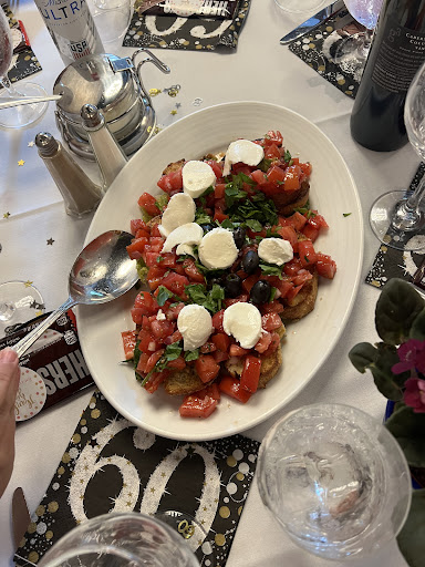 We had the bruschetta as an app, followed by Cesar salad. However, the winner was the mini 1st course - penne vodka in a giant pizza crust bread bowl. That was by far everyone’s favorite. My husband got chicken piccata, I got veal Marsala, and my parents go eggplant parm - all were top notch. Then finally for dessert homemade pastries! Absolutely delicious.