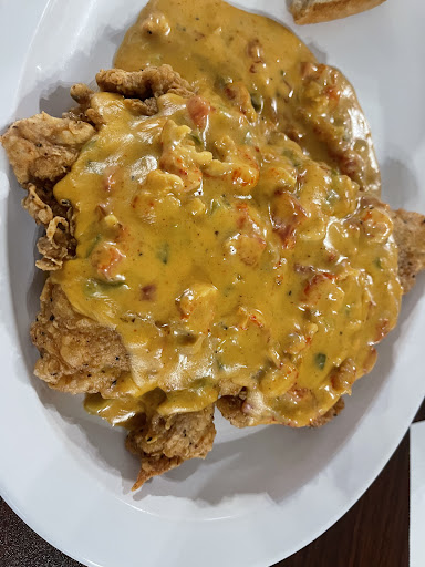 The chicken fried steak was real steak, fried shrimp, and not fried to a gumball. It was very tender and good. They had pretty good chicken spaghetti, their veges were really good. Fried okra, squash, delicious greens, and the best pintos I have tasted in a restaurant. The tea was very good. We drank half and half because it was a little sweet but took some to go.