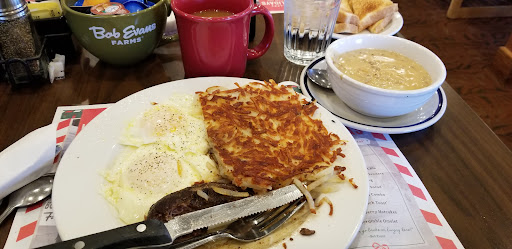There are good intentions of being a decent resturant...except it failed...badly. We were greeted very nicely by a young man and then showed us to our table. He gets a 5 star (dark hair and spuratic tattoos on his arms) he was polite set our table up and started the visit strong. Our waitress came took our order for our drinks.The manager came by about 2 min later concerned we were ignored by our waitress, but mumbled her concern...at this point is when it started going down hill. Our waitress dropped our drinks off and that was it. Didnt see her nor the manager for the next 40 min. No meal, no sorry for the delay no refills..nothing. Then apparently the meal was ready and we got to see our waitress again. I honestly thought she went home for the night. The manager was there she mumbled an apology for the delay. When they dropped the food off they dropped the receipt off too, and well we didnt see our waitress again after that either. The food was warm (and ultimately made me and my daughter run to the bathroom a short time later) the service, was bad. There was no good part after we were seated. We will not be returning. Wish the best for this place, Bob Evan's is a classic, the manager needs to be more confident, and the wait staff be...