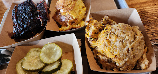 Read moreThe 2 stars is really only because the owner was so kind and friendly, otherwise this restaurant is just kind of a hot mess in so many ways. We were ecstatic for this place to open and the building/sign made it look like higher end dining. So we were pretty shocked to walk and have the hostess basically tell us it’s cafeteria style and to seat yourself and wait for someone to come take your drink order. The line for food wrapped through the entire restaurant, so it made for a super packed atmosphere in addition to the insanely loud level of noise because the entire place is made of metal, concrete and wood. We intentionally chose a seat far away in the back corner and waited a long time before a “waitress” (can they even be called that if all they do is deliver drinks??) took our drink order. She told us to go up and wait in line to order food. There was no way to tell other patrons that the table was taken, so when we got up to get our food, a huge group came in and took our table we intentionally picked in the back. They either need to have the hostess be the one actually seating people or have markers on the table to tell others the table is taken. We stood in line for food for a solid 20 minutes, as soon as we got up to the girl to order, she flat out just walked away. Didn’t say she’d be back, or what was going on. Just disappeared for 10 more minutes while we stood there unsure what to do as the line behind us continued to build. When she came back she said “sorry the kitchen was backed up”, which would have been nice to know BEFORE she walked away. The menu was only half complete. Tons of options say “coming soon!” so all you can order are a few sides (btw where are the vegetable sides besides slaw!?) and a few meat options and dessert. After we ordered it took another 10 minutes just for them to spoon the food onto the tray. The food was crazy expensive, $55 for a few sides and 2 meats. And the food was terribly underwhelming. Lacking flavor and salt on almost everything except the brisket. Cheesy potatoes are awful, not cheesy and not flavorful and so mushy. The pulled pork has some sort of super strong bold smoke taste that was hard to get paste even with sauce. All in all, very very disappointing. Crazy high prices for basically cafeteria style and cafeteria tasting food. We won’t be back, sadly. So many other better tasting, decent priced BBQ joints...