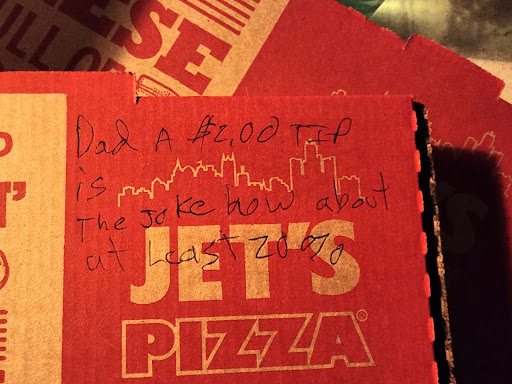 Read moreIve order from jets for awhile now but the past few times have just been urking. I can usually be patient a 5 to 10 minutes extra no problem but their workers have been showing up 15 to 30 minutes late. Today was the first time i had them 30 minutes late not only that but i had ordered online using there deals for a 1 topping pizza and just got cheese without my ordered topping. They are no longer worth my time or money and would no longer recommend them as a...