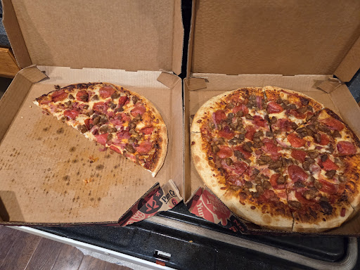 Wow. This location just needs to close at this point. It's only been downhill for the last few years, close up shop and just leave the space for a restaurant that ACTUALLY CARES about it's employees and food. I placed an online order tonight at 8pm. I ordered a small pizza, bread sticks, and a 2 liter. Imagine my surprise when the only edible thing was the 2 liter. I've posted images below of the pizza and bread sticks. The pizza which had pepperoni and cupped pepperoni you can see the cupped was half brown and tasted like motor oil, absolutely rancid. Pizza was doughy in the middle. It was so easy to tell that all my food had been poorly prepared and soaking in leftover grease and used cooking oils. Oh and the best part? When I walked in to pick up my order, no one was at the stand, but I heard both the workers (an older lady and a younger tall lady) chatting and giggling and laughing in the kitchen. Three times with my booming voice did I yell "Hello?" And three times I met no answer. I had to WALK into the kitchen to get them to notice me. The younger employee acted surprised and said something along the lines of "oh I didn't know you were here, sorry I was busy chatting while working!" As if any work was being done. So yeah, thanks for reading my review because I genuinely hope no one else orders from here, god forbid get sick even because I know if I ate my food I would be. Overall, absolutely done with this location, been going here for years, but...