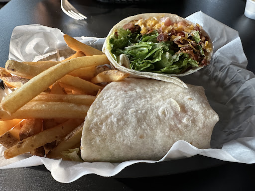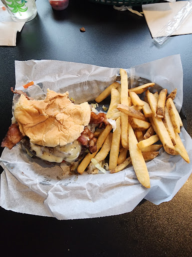 Read moreThe bar was busy when we walked in. Very noisy. We sat in the back room. It was cold back there. The waitress was very friendly. I had the mushroom Swiss burger and added bacon, lettuce and tomato. I ordered my burger with no pink and it was a little dry, but very delicious. Well-seasoned. I would recommend choosing a little pink in the burger. I got the home fries. They were delicious. All the food was piping hot. My sister got the steak fajita tacos with chips and salsa. She said they were good and enjoyed it. If I was in the area, I would order the...