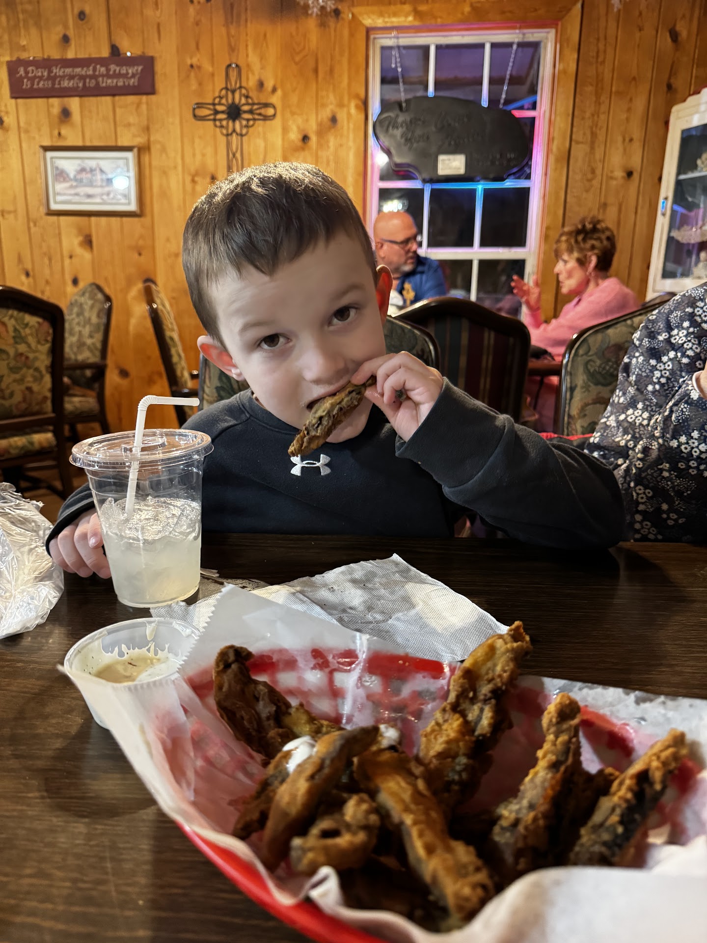 Read moreThis place seemed like a cool place. Go in and they have Joy playing on the radio. Seemed like a good place. Wrong. I had ants in my soda to start with. The waitress was nice but had to flag her down if you want something. The boss is sitting in the corner of the dining area and just looks like a total slob. Had an apron on. Dont know if he helps cooking but I sure hope not. Looked like he hasn't showered in a week and would not want him neer my food. Then I get charged 3 times for the endless wings. I did share 2 of the wings. One with the wife and one with my daughter. But still if anything should have only got charged for 2. The one I shared from and the other should have been the endless. And when I asked about my bill and getting charged so much the boss was very rude about it and just turned his back and walked away. Do not recommend this place. Food and service is definitely not worth the money and you may have to deal with rude people if you go here....