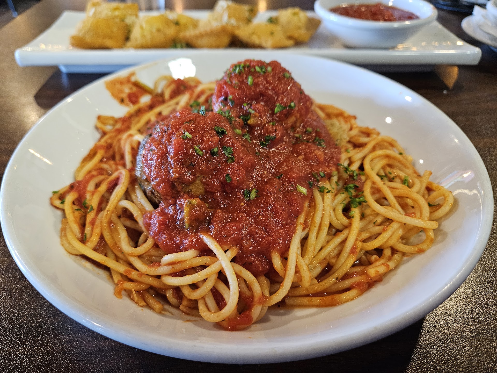 Read moreIf you come here, bring your appetite! The portions are huge! We went yesterday for lunch & are still whining 'cos we were traveling & could not bring the massive leftovers home. We will know better next time. My husband said the spaghetti & meatballs were delicious. I had the eggplant parmigiana. The eggplant was baked (not coated & fried) & was very tasty with lots & lots of eggplant covered with pomodoro sauce & wonderful mozzarella cheese. The Capellini Pomodori Freschi was so light & flavorful. Perfect for a light appetite with enough to feed a couple of people! Our waitress was a delight & very knowledgeable despite only being there 2 months--excellent service. If I had to pick something to change, I wish the bread was a bit crispy & crusty to dip in olive oil mixture. But that surely did not keep us from devouring the entire basket! Thank you for a fantastic lunch, we will definitely make the drive to come back. Miss your Clanton location--now come to Prattville!