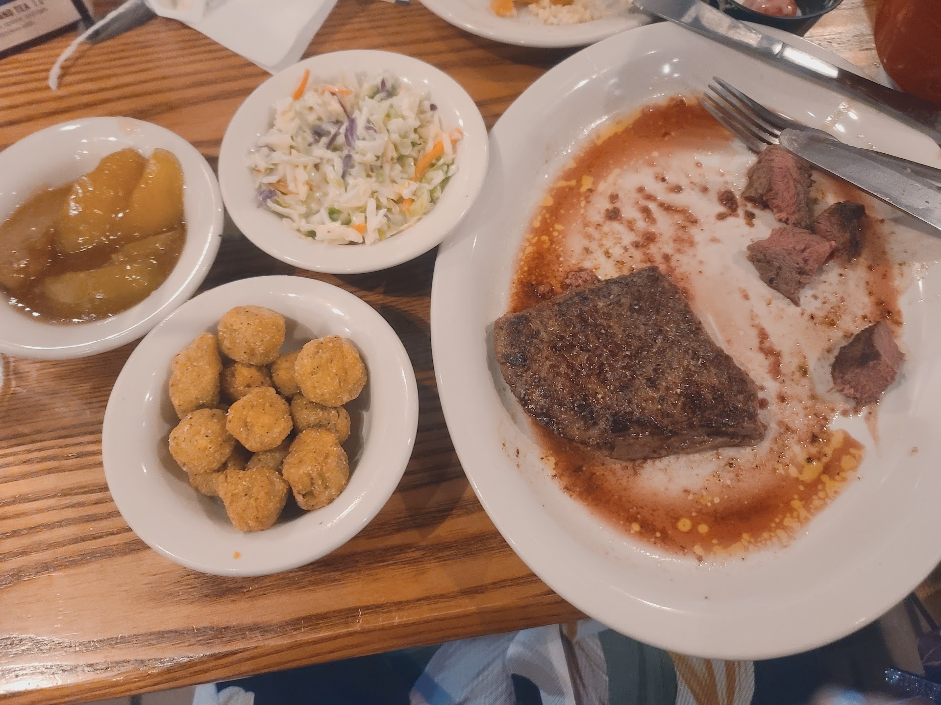 Read moreActively sitting here watching the three tables that sat down 20 minutes after us getting their checks while we have no food. It's been over an hour since we were sat and we still don't even have our cornbread. It's evident we were forgotten about . Not once in the over hour that we've been here have they stepped foot at our table. She forgot to put our order in, that's fine. What wasn't was ignoring us and the lack of communication about it. We're both servers too and have worked in the industry for years we have patience and grace for mistakes. Not for pride that overshadows communication. Thankfully I know their name and can decline them in future instances. We sat at 6:35, it's 8:02 now and we still don't have food.