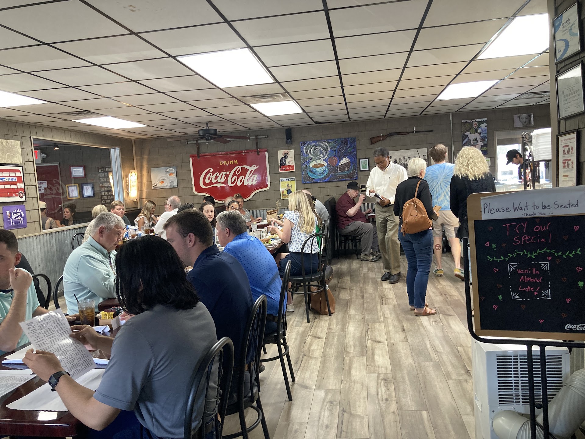Read more9-27-2028 It was a half-way meeting point between Chattanooga and Atlanta, and this spot I chose strictly because they have the highest amount of yelp stars for the area. I was traveling to see a gentleman I met at a wedding for the first time for a lunch. We decided to try 4 sandwiches and 4 desserts all of which were delicious: Ruben, Black Bean, a ham & swiss, chicken salad. The ham it was called something else... I believe. All that was leftover was the black bean...which I finished off a few hours earlier today. 😊 The desserts are definitely worth saving room to savor. We ordered the coconut cream pie; their best seller. Gluten-free chocolate, chocolate cake-cheesecake is huge and wonderful, Black Rasberry, this one reminded me of Easter. We arrived at lunch and didn't have to wait...on a Wednesday. Our server was wonderful...and if I call her out by name, I am sure I will butcher it. But, it's something along the lines of Neko. Very attentive! Price is an area I can't help as it was the third meet-up first time eating together and he picked up the ticket before I could see. Yes, he was a gentleman and the conversation flowed. :) He brought me a book as well. He has already asked to meet again...so we will see. I highly suggest visiting if you're looking for a spot between...