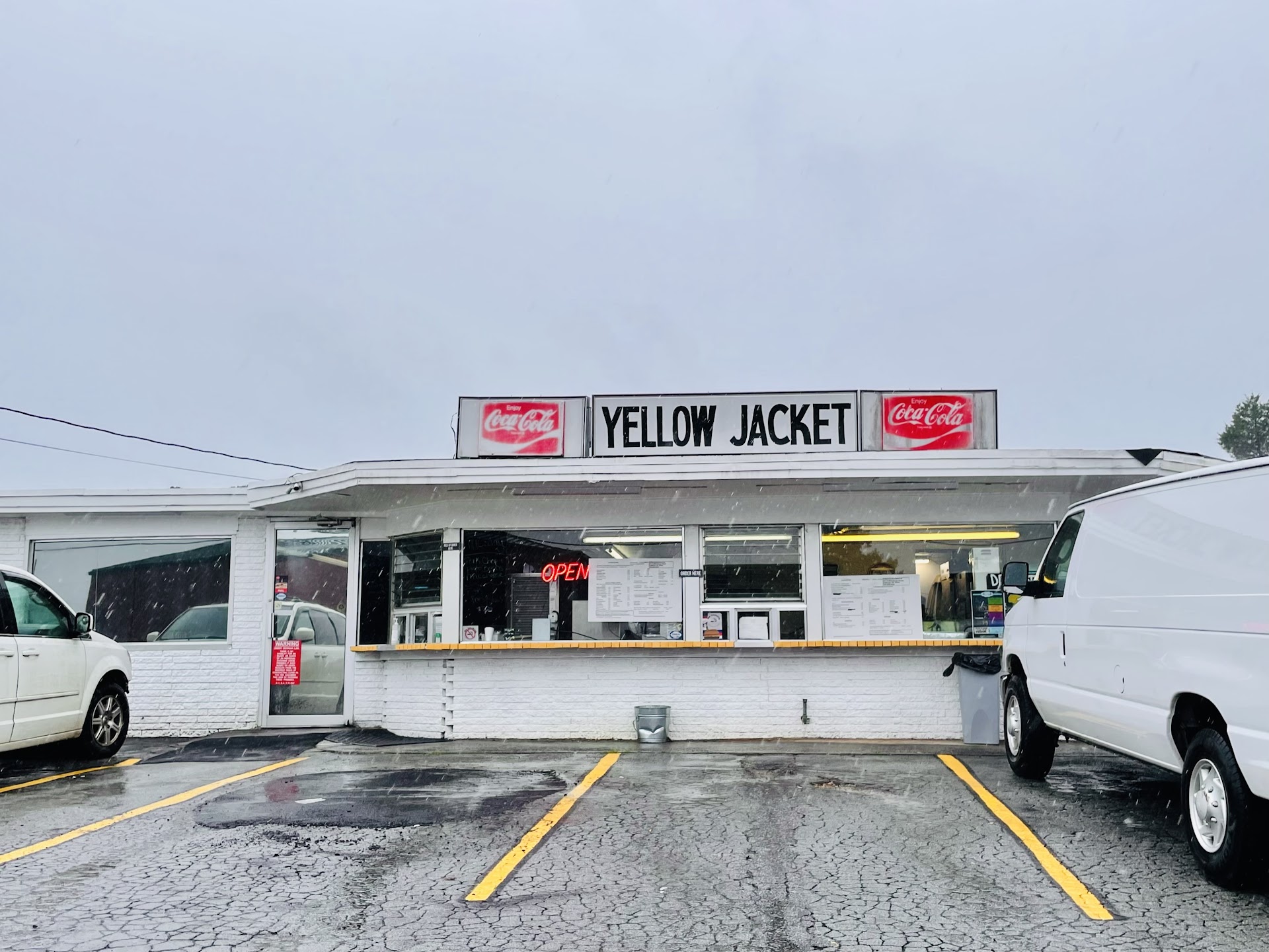 Read moreWe were visiting blue ridge ga for our honeymoon and found the rock garden (down the street) to visit. Of course we needed some grub while we were out that way and the Yellow Jacket Drive in definitely hit the spot! We found it online beforehand and loved what we saw. It doesn’t disappoint in person either. A tad tucked away (missed it the first pass), but nice and cozy. It was cold so they invited us into their small dining room, with a few booths and a couple “community tables”. There was also a pick up window and drive through. With a small staff and lovely waitress, they filled the orders in good time. I got a burger and fries, and my husband got a hot dog with chili and a foot long (hot dog) with slaw. He then ordered a second foot long because he thought it was so delicious. The prices were also very very reasonable. Absolutely no complaints!