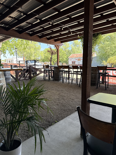 The outdoor patio has this laid-back, Southwest feel that instantly transports you to a rustic Texas ranch. Sitting there, staring out across the street at the old feed store and weathered silos, you can almost hear the tin roofs creak and feel the charm of small-town Americana. The ambiance is pure comfort, with a mix of string lights, cozy seating, and country tunes setting the mood just right.