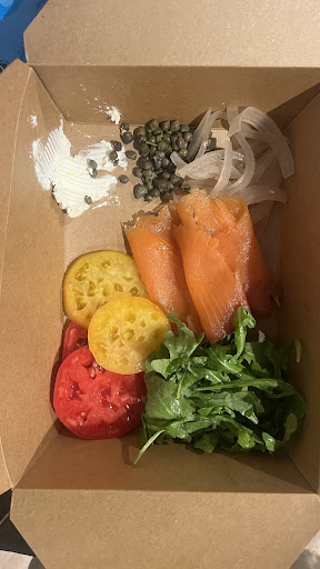 However, I'm giving it three stars because of a recent to go experience with their salmon bagel sandwich. I ordered it to-go and instead of receiving a sandwich, I got a deconstructed version: salmon, bagel, tomatoes, cream cheese, capers, and onions all packed separately in a box. I had to assemble it myself, which, if I'd wanted to build my own bagel, I would have just gone to the store and done that!