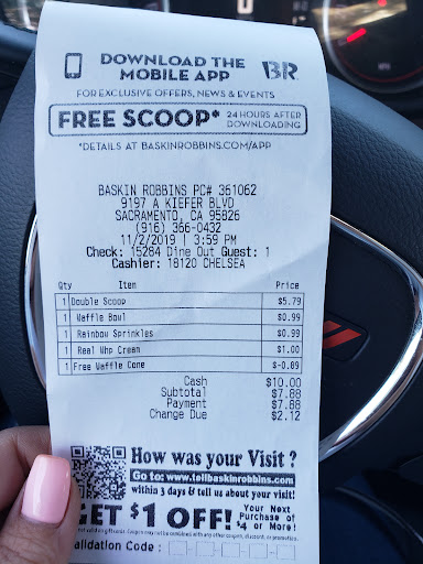 I was charged a dollar for whipped cream that you can see by the picture was about the size of a quarter. As the girl handed me my ice cream, I looked at the whipped cream and questioned the amount given vs the amount charged and she replied that is what they are told to give for a dollar and that they cant control how much their boss makes them give or charge. She then followed it up with stating that they are told that they are the highest charging Baskin Robbins around.
