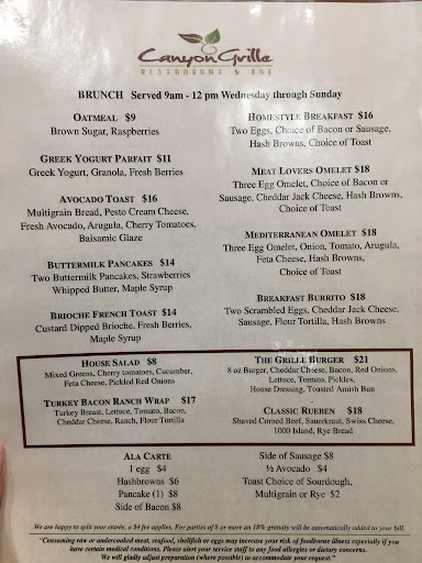 Read moreI’m including pictures of Canyon Grille’s most recent menu as of 2/17/23.