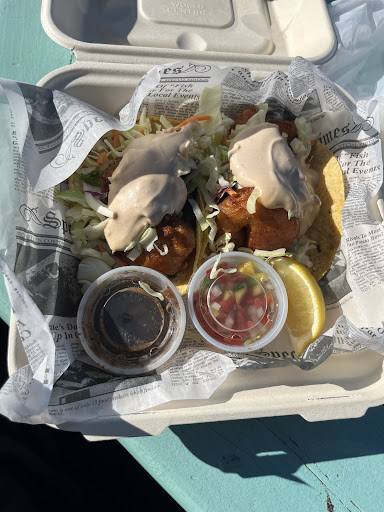 Be prepared for varying wait times; while fish and chips seem to get priority, other items may take longer. The location in the middle of a parking lot offers ample space, and there are a few tables with umbrellas if you prefer to dine outside, although eating in your car is likely.