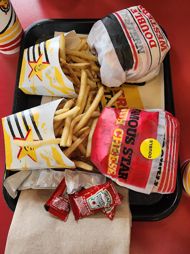 I have waited three and half weeks to eat a Dbl-Bacon Cheeseburger w/Fried Onion Rings from Carl's Jr!!! Tonight, my wish came true from this location!!! The signs were bright and clear, floor was clean, and l had two minutes (2) to read the menu, and the clerk was clear and plain..."good evening, how may l help you"??? I ordered a Dbl-Bacon Cheeseburger with lettuce, tomato, and raw onions!!! He said;"okay no extra charge...did you want the fried onions also"??? Yes....was my reply and it took seven (7) minutes to prepare!!! Neat, clean, and orderly....what an experience!!! The Burger was delicious and just the right amount of sauce, meat was perfectly done but moist, raw and fried onions were crushing in every bite, bacon was crisp and tastey and my heaven was complete with no mess!!! Easy parking and the lonesome end of the parking facility but lit well!!! The enrire visit was great....upon leaving the store, there was a great feeling ordering a Dbl-Bacon Cheese Burger and pleasure consuming it in the...