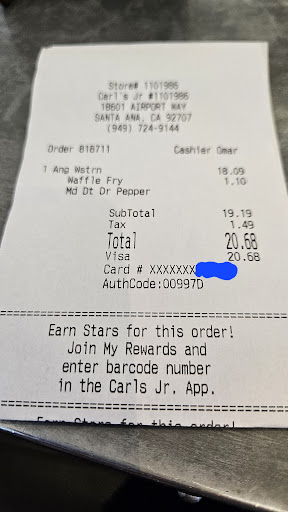 Don't eat at this Carl's Jr. Go to one outside the airport. The workers here don't care if the order is correct and never check the burgers as they are finished making them. I wanted to try the Angus Western but got a famous star instead. Waffle fries here have zero seasoning, unless. Carl's Jr. waffle fried are that bad now. it would be better to let one of the other fast food brands take up the spot to serve better. Don't go here if you are in a hurry. FYI, it was $20.68 for the Angus combo and ended up with a famous star. Total ripoff.