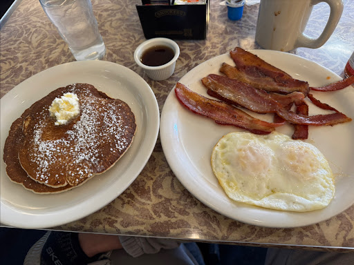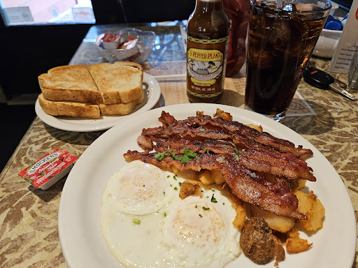 There are a number of breakfast specialties, including pork chop and eggs, homemade beef hash, New York steak and eggs and chile relleno. Omelettes range from traditional Denver, vegetable and seafood, to eggplant, bacon and Florentine. If you prefer something sweet for breakfast, you may indulge your sweet tooth with blintzes, waffles, hotcakes, fresh fruit or parfait. Local favorites include 5 different varieties of eggs benedict, crab cakes and lox and bagels. Lunch selections include burgers, hot sandwiches, melts and soup.